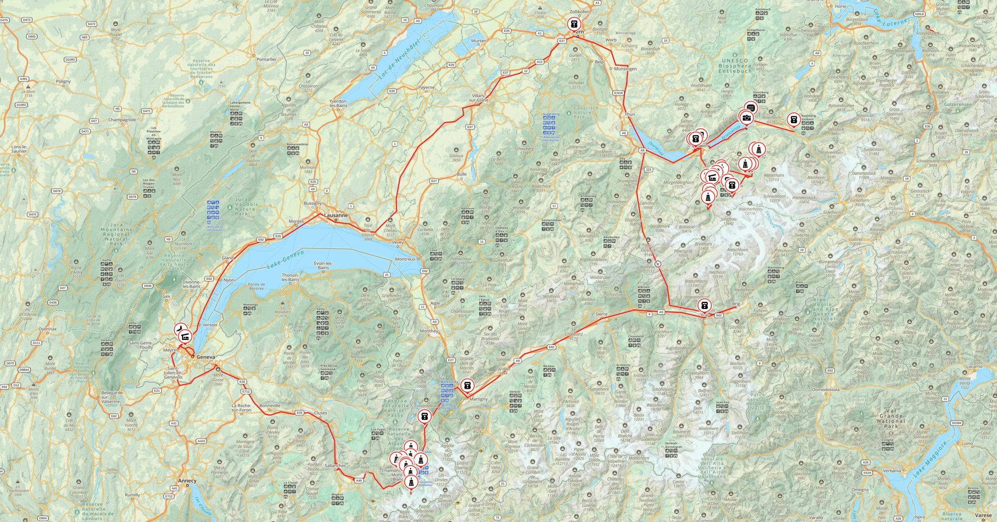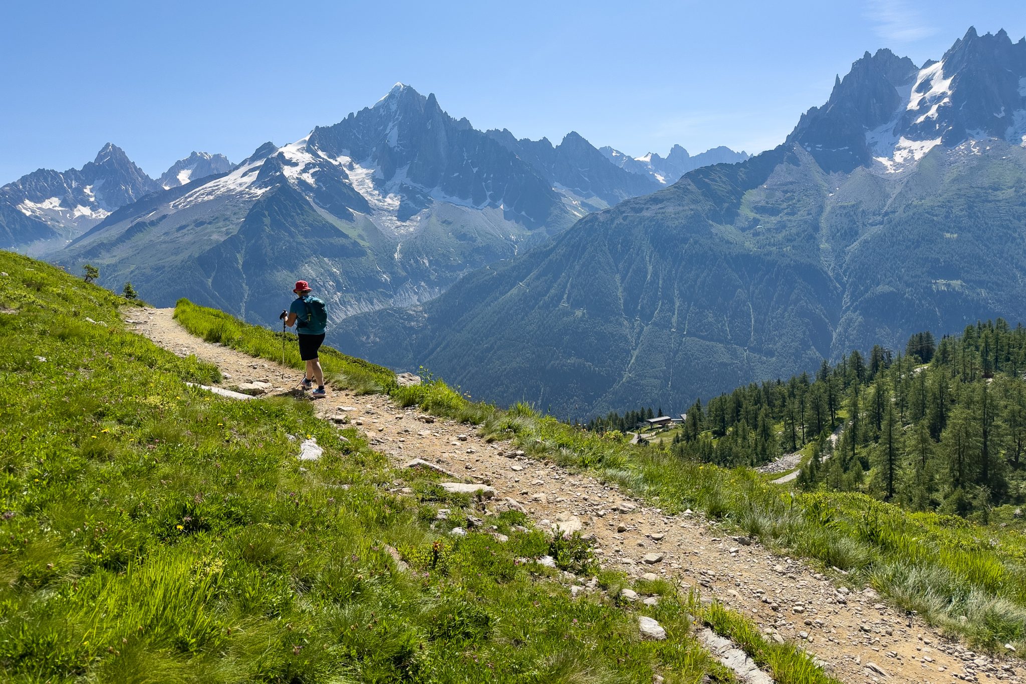 When we exited the train station at Chamonix, this was our first view of the city. In the foreground is the leading edge of what we would find to be a city-wide party going on. In the distance on the right is the Planpraz gondola heading up to Planpraz. Then, just to its left is the TBD gondola heading up to the summit of Le Brevent (8,284 ft).