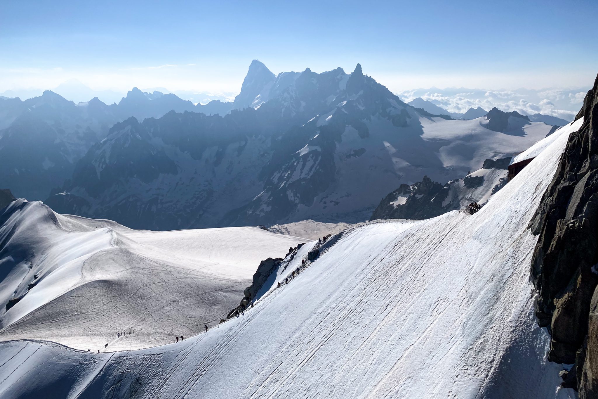 This photo was taken just below the peak of Aiguille du Midi (12,605 ft).